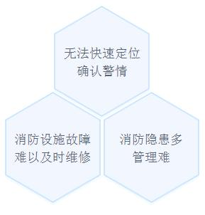 主要问题 消防点位数量庞大而无法快速定位火警位置;消防设施数量多,巡查工作量大;设施故障频繁,维修不及时;消防通道和疏散指示,防火卷帘门易遮挡,消防隐患多;消防安全管理落实难。