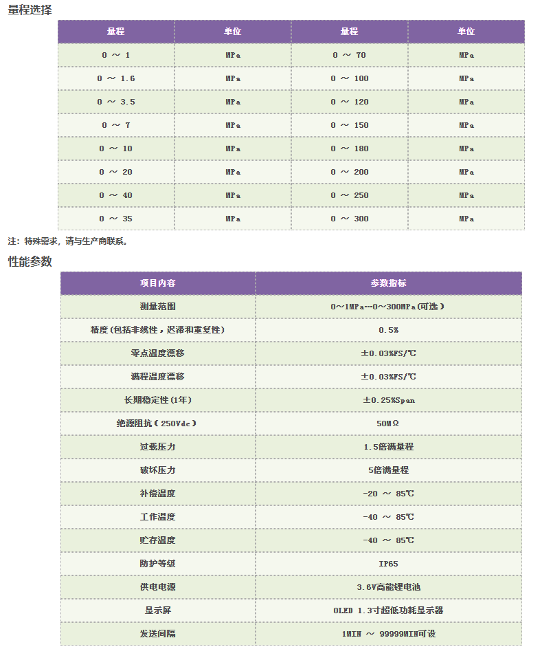 产品特点 1.支持多种无线传输方式 2.24位高精度ADC采集 3.高能锂电池供电,待机时间长 4.低功耗,静态电流*达15uA 5.OLED显示,耐低温 6.结构小巧,现场安装方便 产品说明 RC9201防爆型中高压无线压力变送器是一款高能锂电池供电,具有无线通信功能的压力检测智能仪表。该仪表采用微熔压力传感器作为压力信号测量元件,采用24位高精度AD转换器采集压力、温度信号,实现了对变送器进行宽温度范围的零点和温度性能补偿。特点是不锈钢单件一体化结构;无O型圈、无焊缝、无硅油;压力范围广;适应恶劣环境;量程覆盖范围宽;过载能力强。支持多种无线:433、LORA、LORAWAN、GPRS、LTE、NBIOT、WIFI等。人机界面采用1.3寸低功耗液晶屏,操作显示方便应用。应用领域是天然气、石油化工、消防、自来水、工业监控系统等,通过无线通讯的方式,实现信号远距离的无线传输,从而简化了安装方式、节约了客户的布线成本,真正达到节能环保的目的。 RC9201防爆型中高压无线压力变送器,产品技术条件和验证方法符合GB3836.1-2010《爆炸性环境第1部分设备通用要求》和GB3836.2-2010《爆炸性环境第2部分由隔爆外壳“d”保护的设备》的规定。 RC9201防爆型中高压无线压力变送器经过国家指定的防爆产品检验机构审查合格并颁布“防爆合格证”,防爆标志Exd ⅡC T6 Gb。