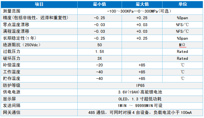 注:特殊需求,请与生产商联系。 性能参数